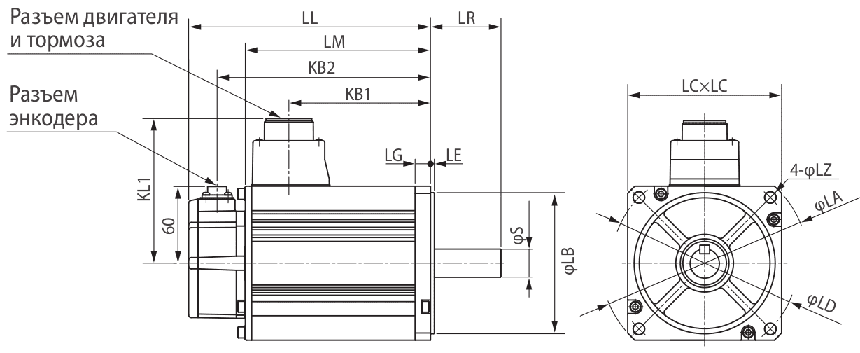 R88M-KH5K020C-S1/BS1 - высокоинерционный сервомотор, 23,9 Н·м, 5 кВт, 2000 об/мин, 400 В, 17-разр. абсолютный энкодер, вал со шпонкой, без тормоза / с тормозом.